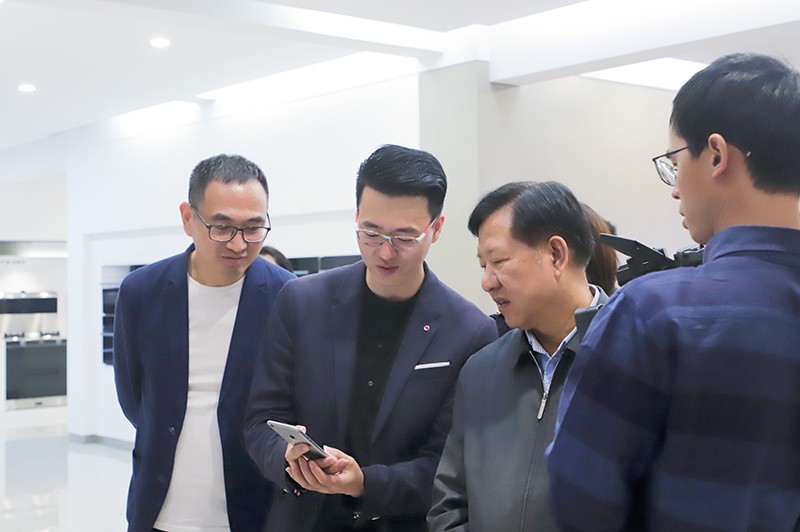 在產品體驗館,研究院院長張祥程為毛主任闡釋了北斗星在行業內獨有的設計理念與設計定位,以及北斗星之所以能夠在短短一年時間內斬獲國際大獎的技術壁壘,毛光烈主任等領導和專家充分肯定了北斗星智能制造產業的快速成長及高質量發展。現場,張祥程院長演示了北斗星集成灶米家APP的物聯網功能,沈思恩總監現場演示A6蒸箱操作,并爆炒辣椒演示北斗星集成灶的超強吸力,“還真是一點辣椒味都聞不到!”毛主任不禁贊嘆,北斗星不僅是無煙廚房的神器,更是智能廚房的引領者。