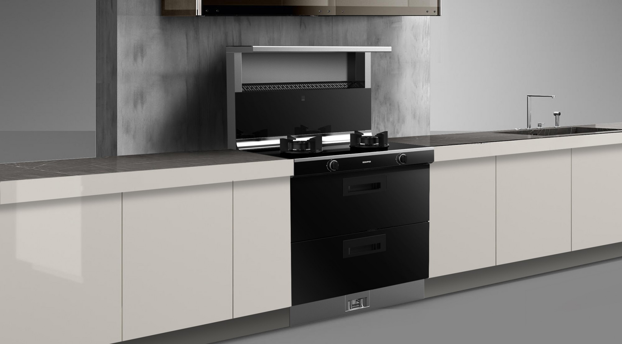 北斗星C2采用三合一設(shè)計(jì),吸油煙機(jī)+燃?xì)庠?消毒柜,將置物、吸煙、烹飪、消毒、換氣等功能完美融為一體,有效節(jié)約廚房空間。
