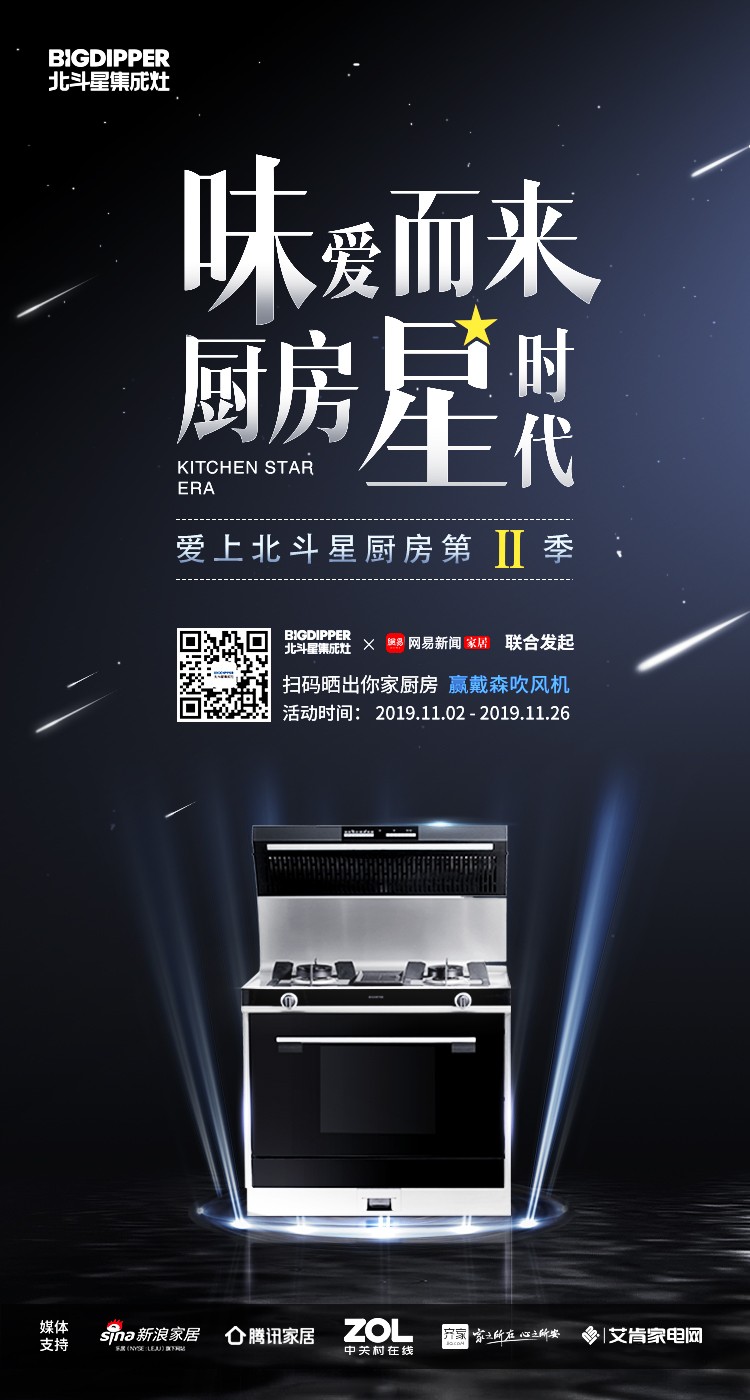 斗星集成灶聯(lián)合網(wǎng)易家居、新浪家居、騰訊家居、中關(guān)村在線、齊家網(wǎng)、艾肯家電發(fā)起“愛上北斗星廚房”第二季評選活動,期待每一位熱愛生活的你,曬出你家的最美開放式廚房,和我們一起分享你的美好與愛~