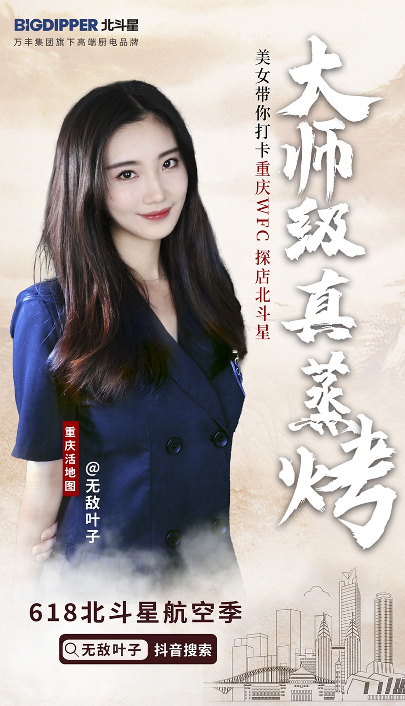 這個618,我們同百萬粉絲美女博主、重慶活地圖@無敵葉子一起打卡網紅城市重慶地標WFC,探店北斗星重慶旗艦店,刷起一場“大師級·真蒸烤”的探索之旅。