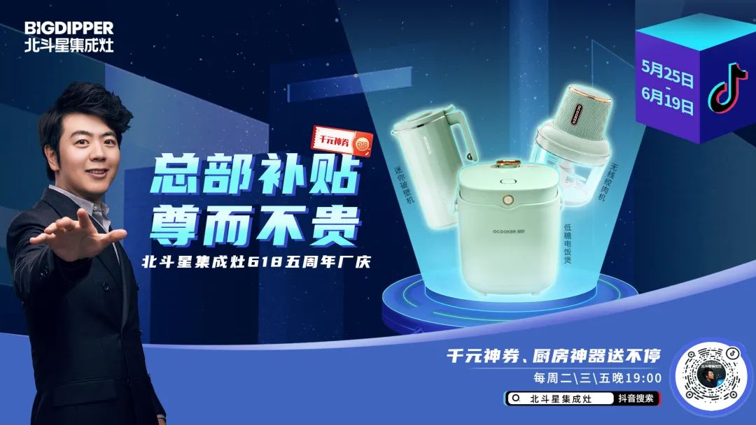 5月25日-6月19日,北斗星集成灶618五周年廠慶,正在進(jìn)行中!每周2、3、5 晚19:00,來(lái)【北斗星集成灶】抖音直播間,千元神券、廚房神器送不停!入手北斗星,感受不一樣的廚房體驗(yàn)!