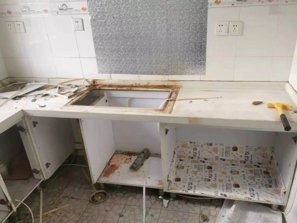 于是這家用戶找到了我們,北斗星主打的72小時煥新,無需搬家服務讓他十分滿意,希望北斗星能給他一個干凈整潔的廚房。于是我們第一時間去到了用戶家里進行量房,設計完成后便開始了拆除的工作。